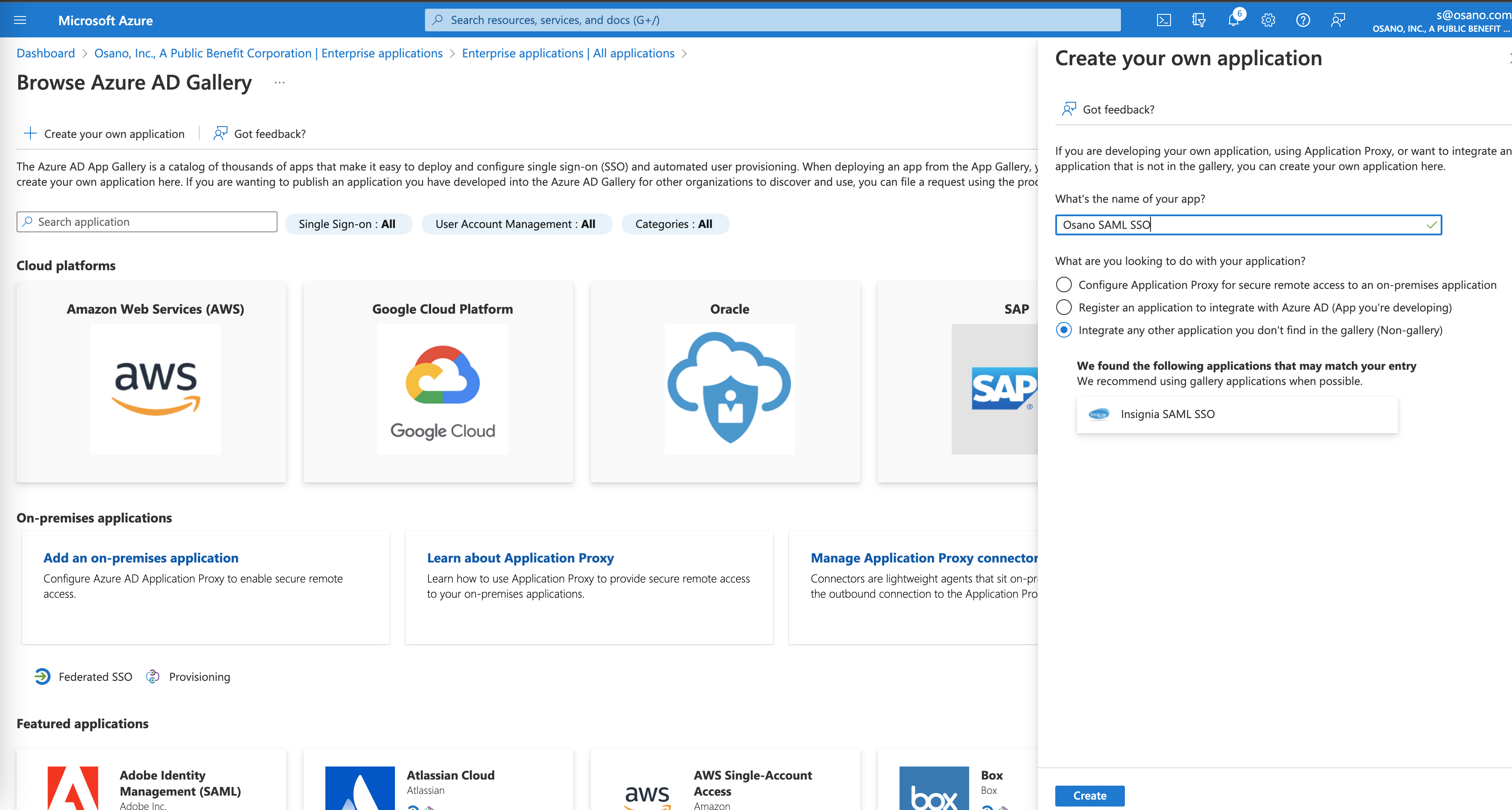 - Fill in an application name, such as "Osano" and click the "Create" button.