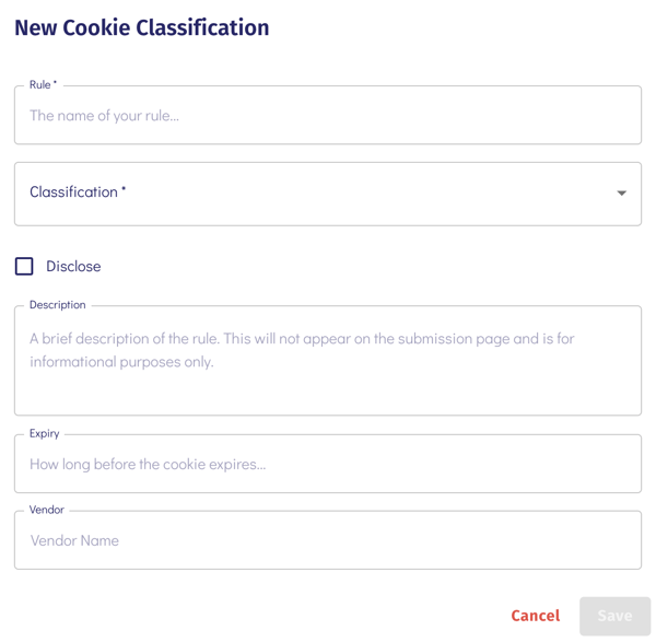 Adding a Script or Cookie Classification Rule from Scratch