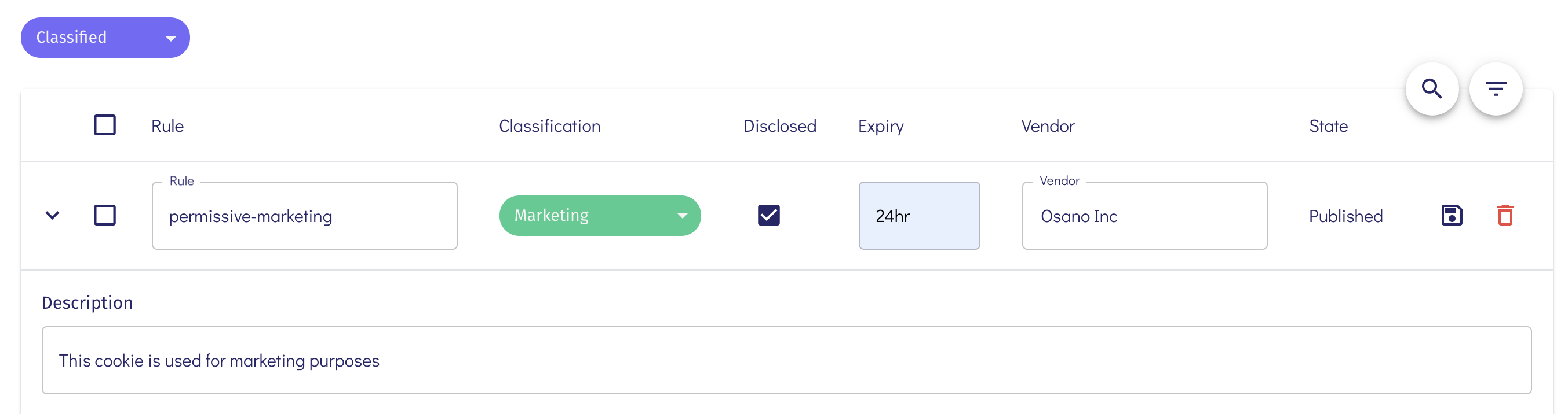 - The Description field can be edited by using the carrot to the left of the cookie name