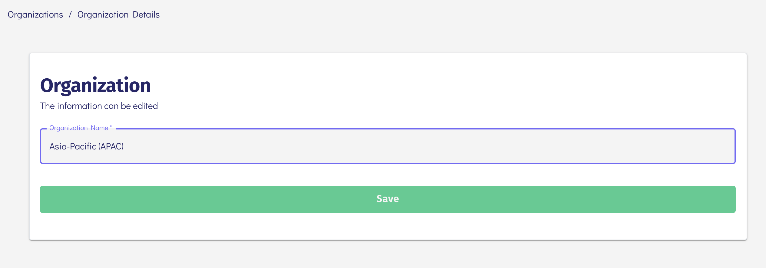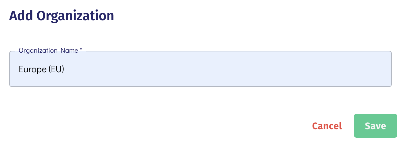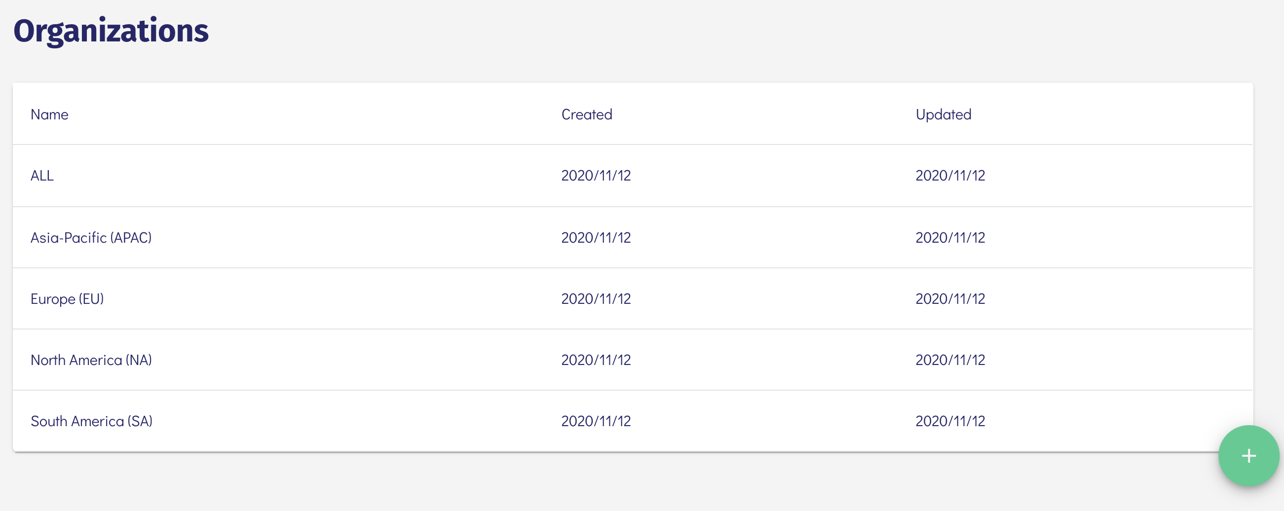 - Click the green “+” in the bottom right-hand corner to add a new organization.